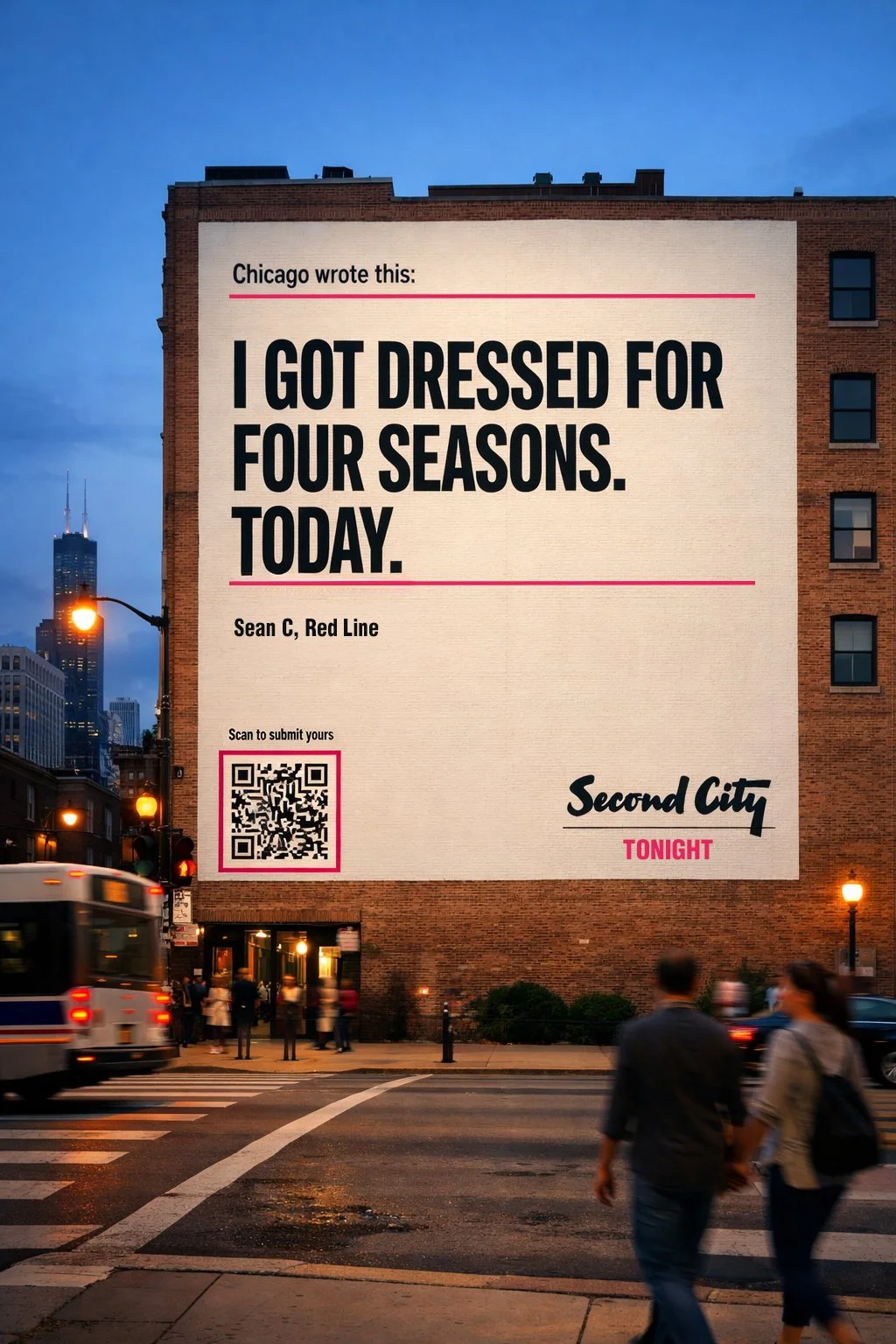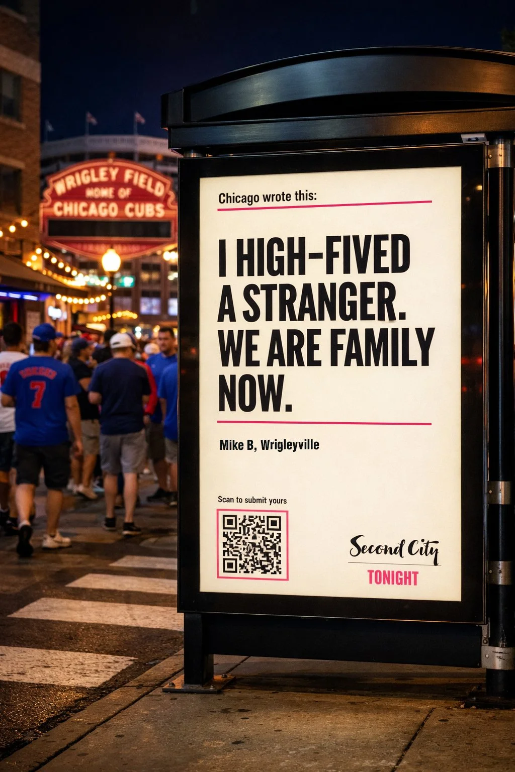 We turned high-traffic Chicago locations into a live comedy pipeline. Station and neighborhood specific headlines made the city feel like it was speaking directly to you, while a participatory “Laugh Line” prompt invited commuters and tourists to submit their daily Chicago moments via QR and social.