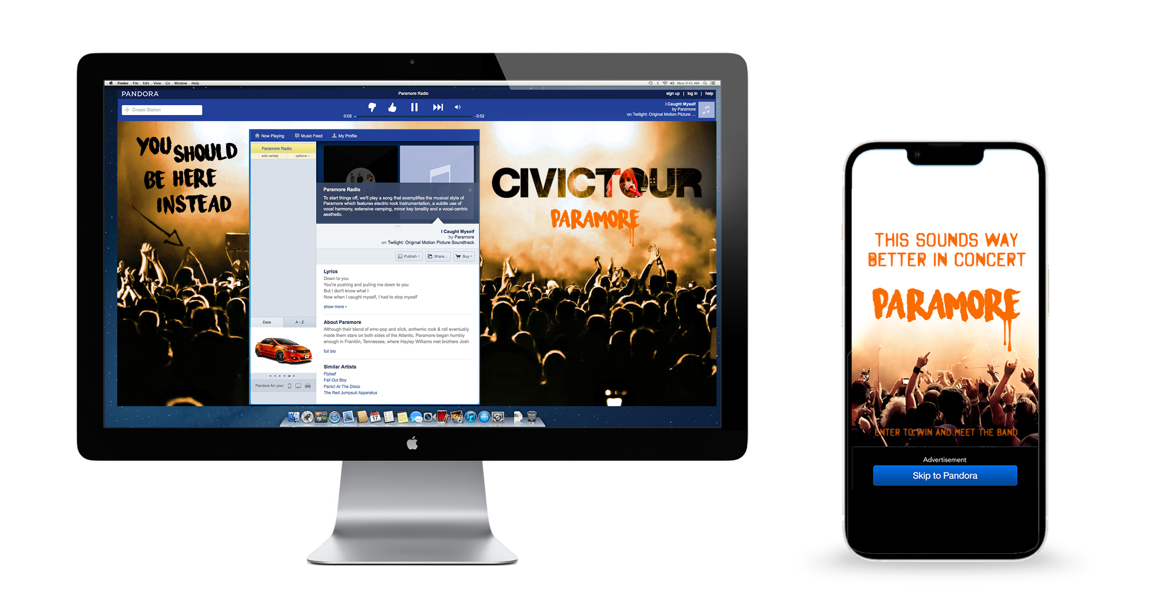 The campaign created national excitement by framing the custom Civic as a fan collectible and used a cohesive tour-first visual system across OOH, print, and digital. The work helped Honda feel less like a sponsor and more like part of the experience, connecting Paramore fandom to the Civic Tour through a consistent, high-energy rollout.